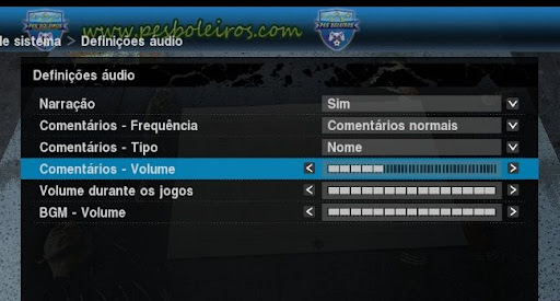 ----- Menu : Definições de sistema : Definições de audio -----